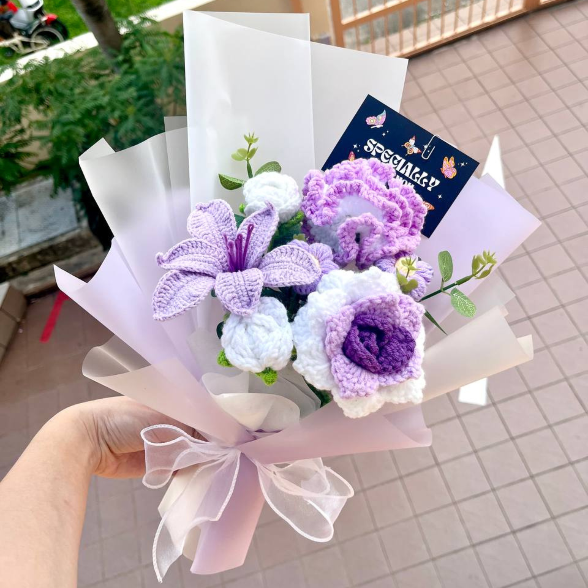 Each M-size bouquet is approx 39cm (H) x 27cm (W) and comes with: