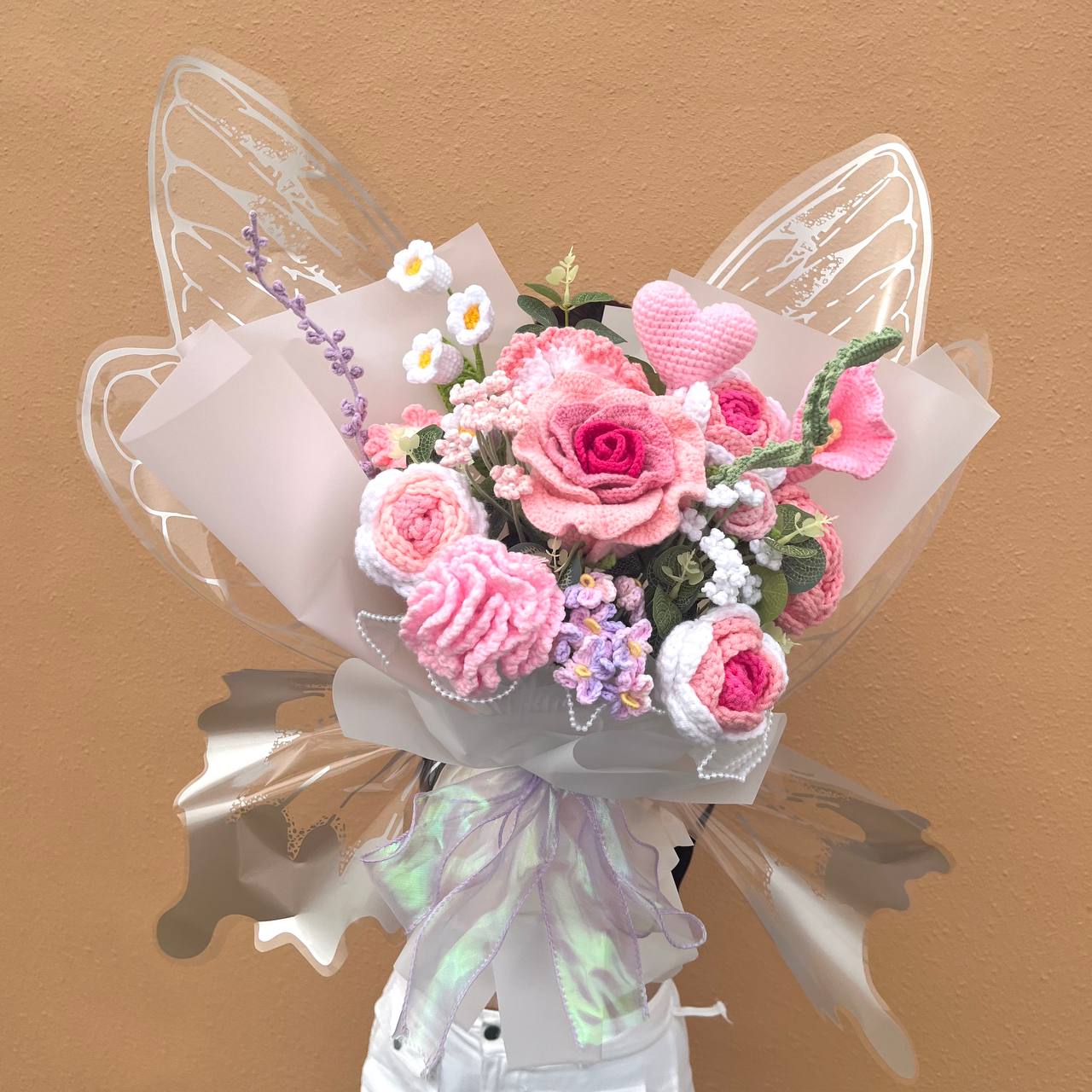 Bring a burst of joy and romance into your life with Flutter, a meticulously handcrafted crochet bouquet designed to captivate the senses. Made from high-quality milk cotton, this vibrant, bright pink arrangement features a stunning mix of delicate blooms: Thai Rose, Baby's Breath, Bubble Roses, Carnations, Daisies, Calla Lilies, Lavender, Lily of the Valley, and Forget-Me-Nots.
