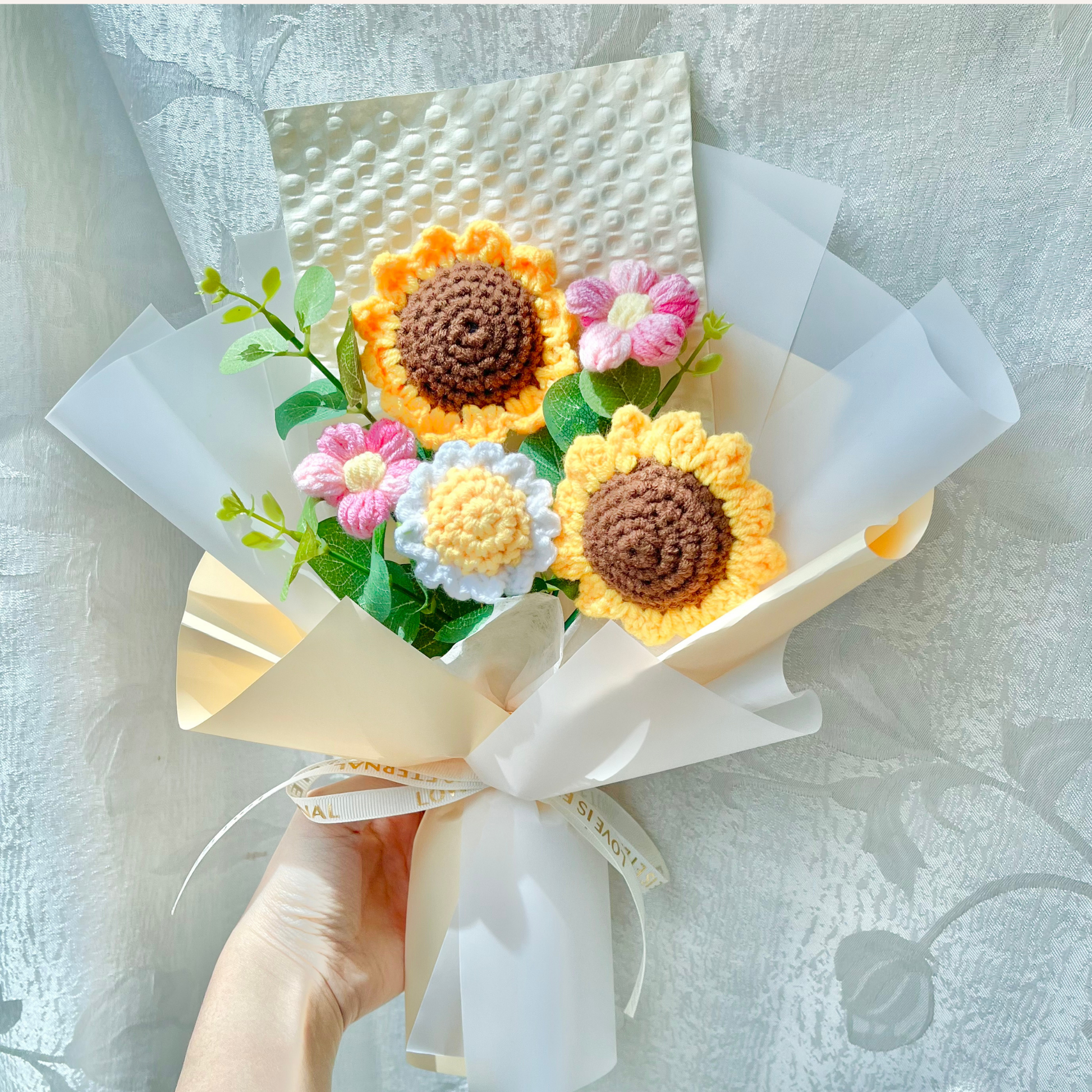 Our elegant petite bouquets feature hand-crocheted flowers, each crafted with care and attention to detail. Sourced ethically, these beautiful arrangements are a sustainable and affordable way to add a touch of lasting charm to any space. Perfect for gifting or decorating, they offer timeless beauty in a thoughtfully crafted package.