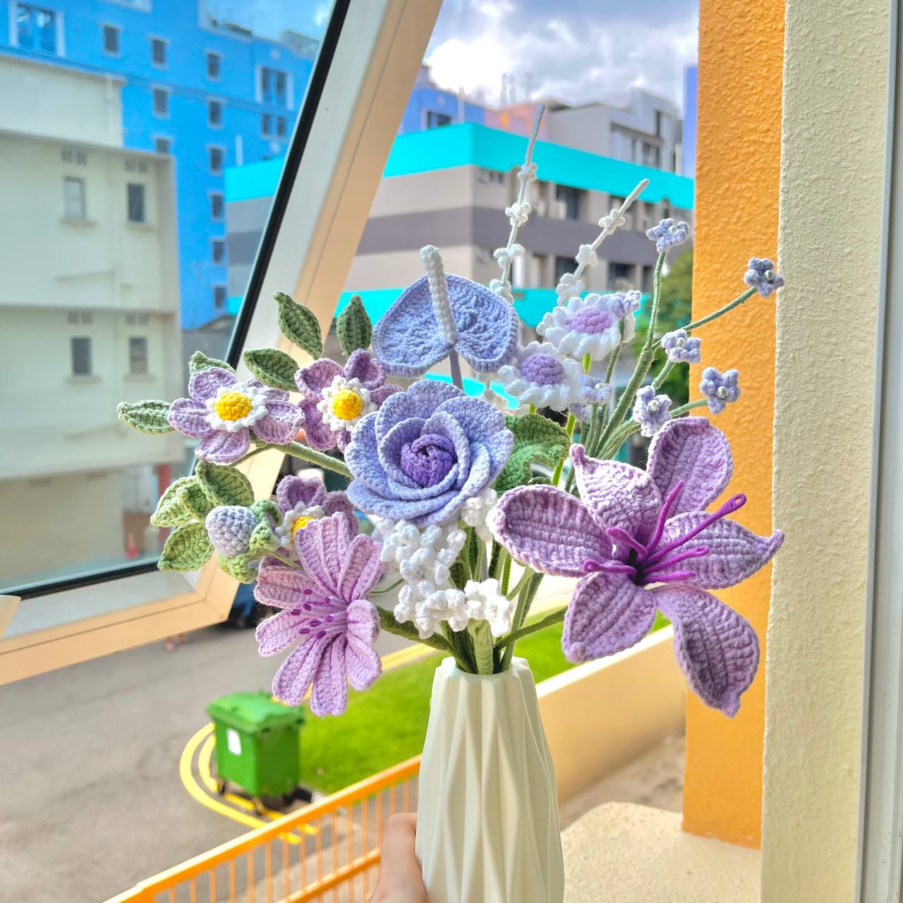 Breathe new life into your home with Sukuna, a beautifully handcrafted crochet arrangement in a harmonious blend of soothing and vibrant hues of purple. This exquisite piece features delicate shades of lavender, lilac, and rich violet, creating a captivating focal point that elevates any space. Perfectly designed as a statement centerpiece, Sukuna will effortlessly transform any table, shelf, or mantel into a stunning work of art.